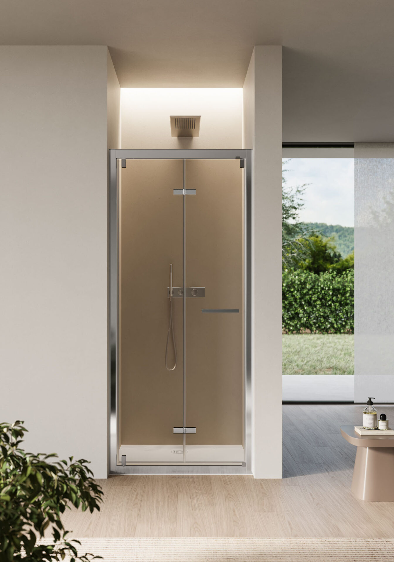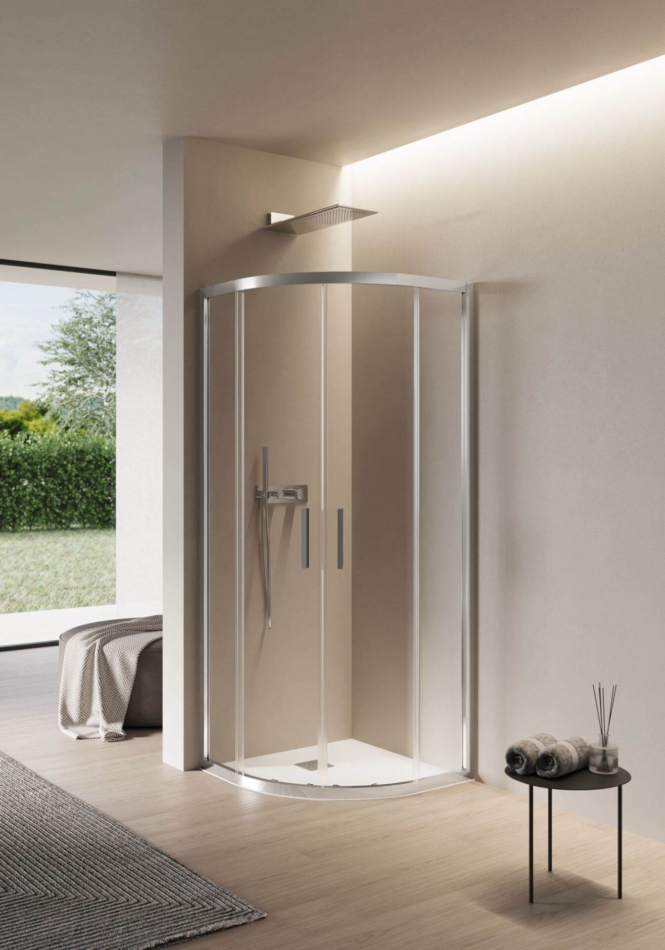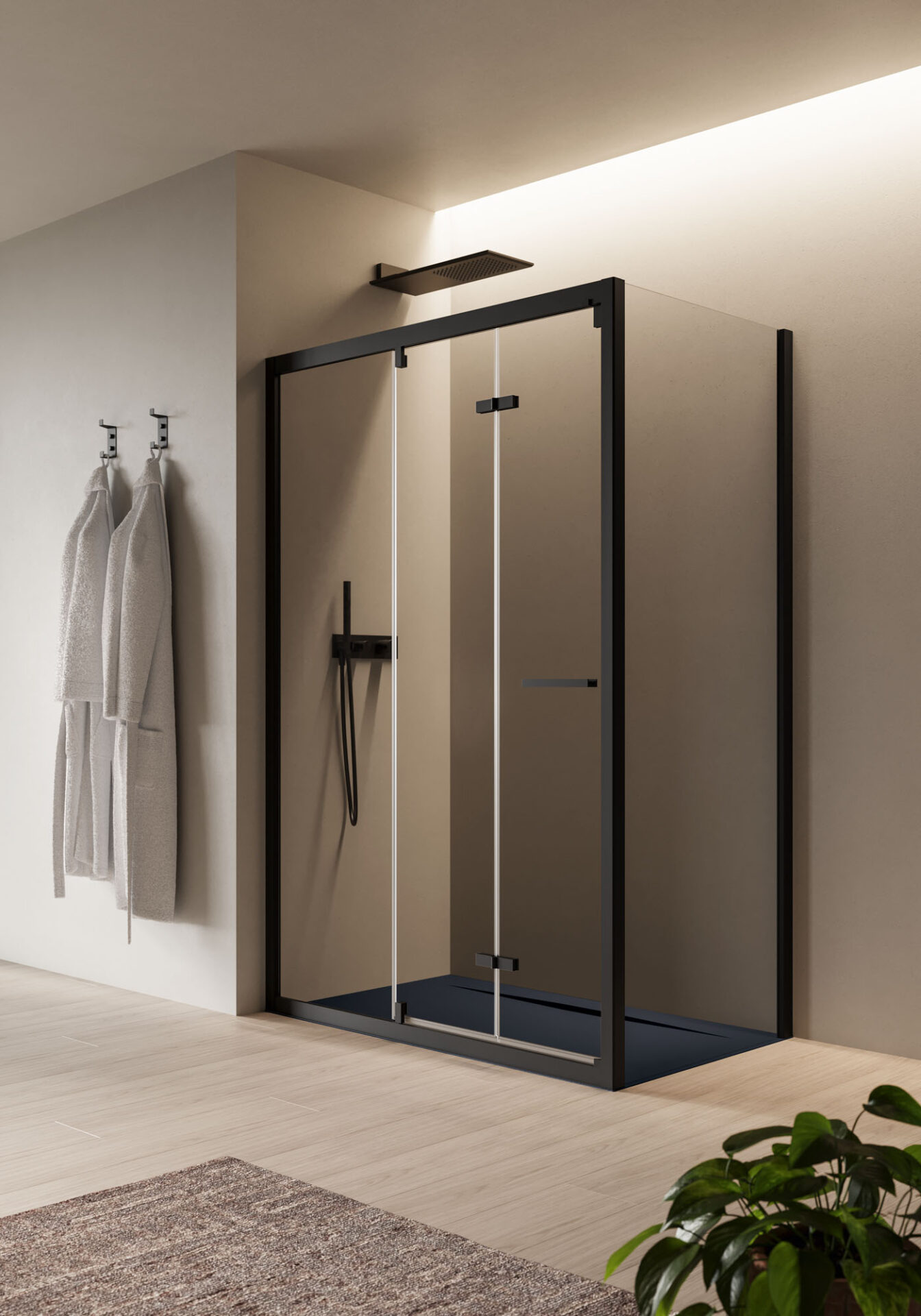 Funktionalität bei der Duschkabine. Die Duschkabine mit Rahmen wird durch ihre auffallende Optik zum Blickfang. Mechanismen und Details bieten neue Geometrien und unverkennbare Parallelen. Origo gibt es auch als runde Duschkabine.