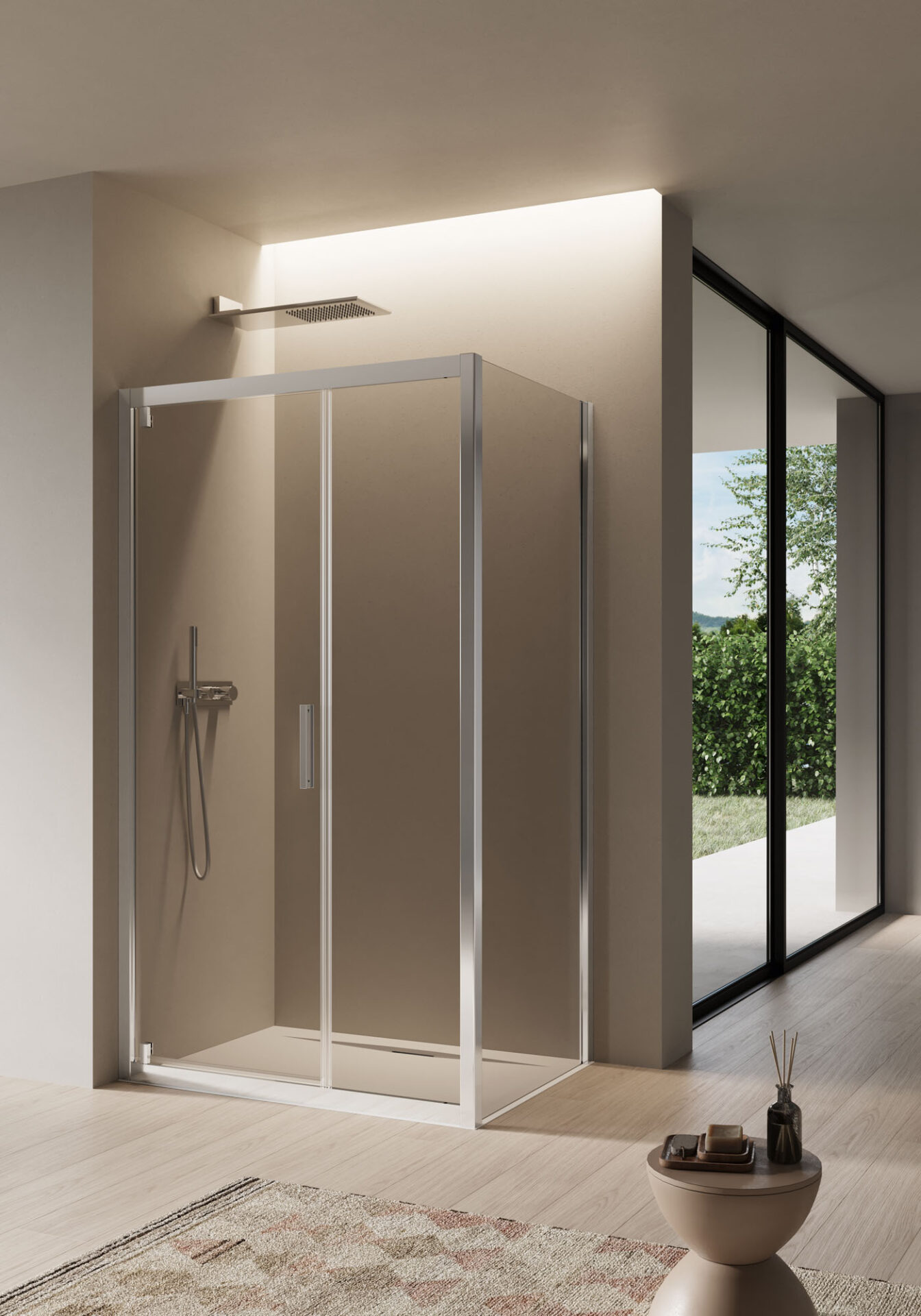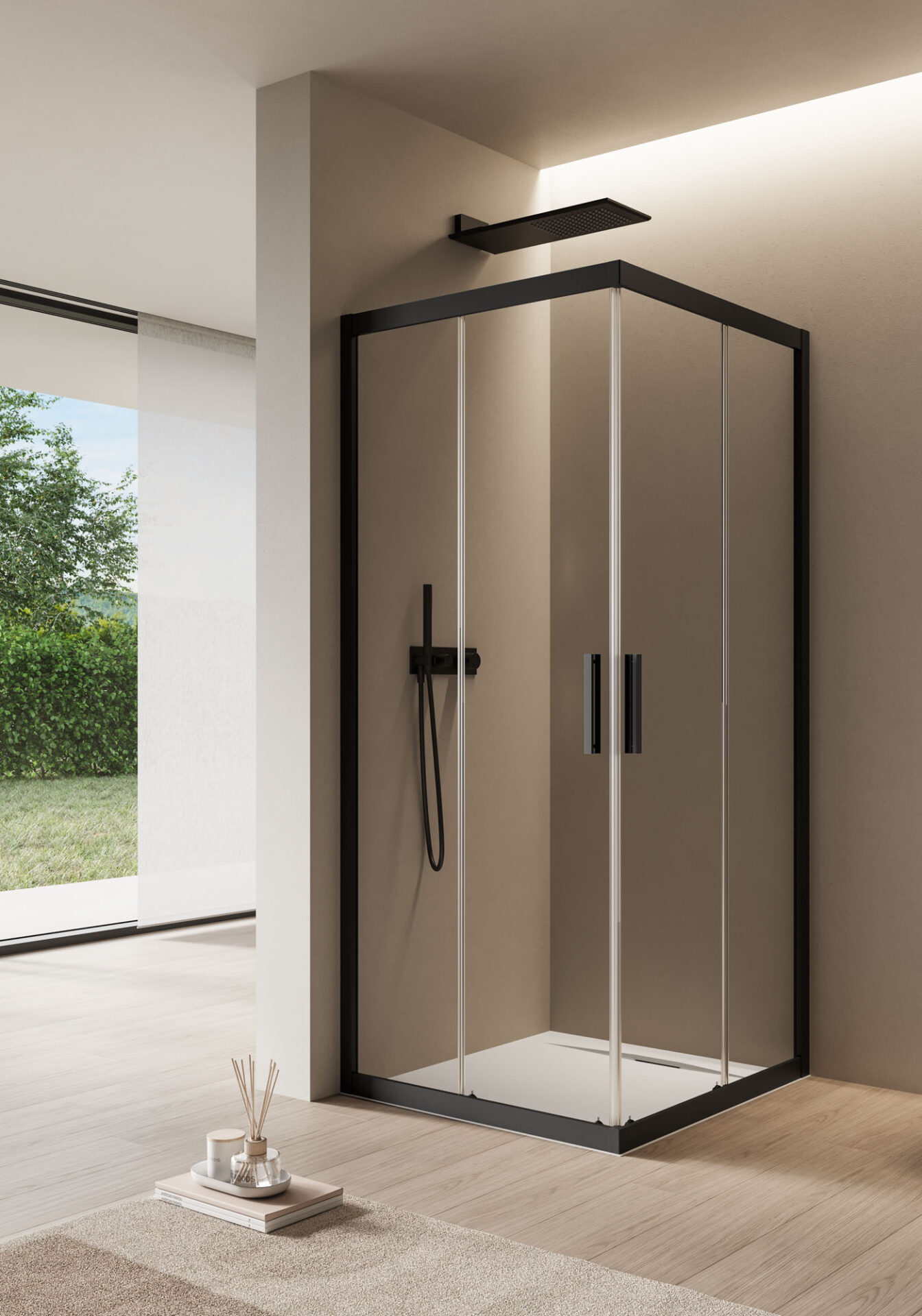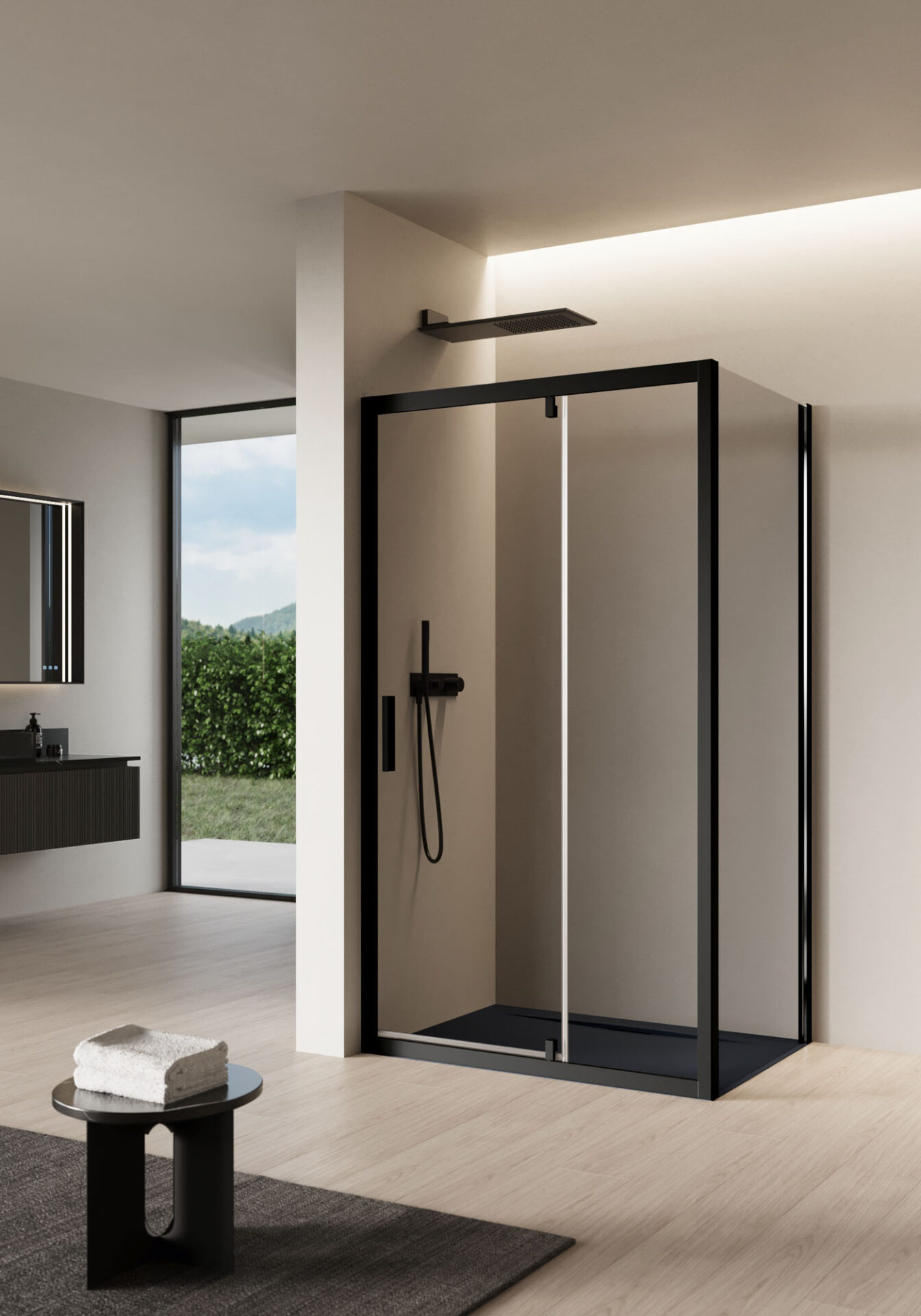 Funktionalität bei der Duschkabine. Die Duschkabine mit Rahmen wird durch ihre auffallende Optik zum Blickfang. Mechanismen und Details bieten neue Geometrien und unverkennbare Parallelen. Origo gibt es auch als runde Duschkabine.