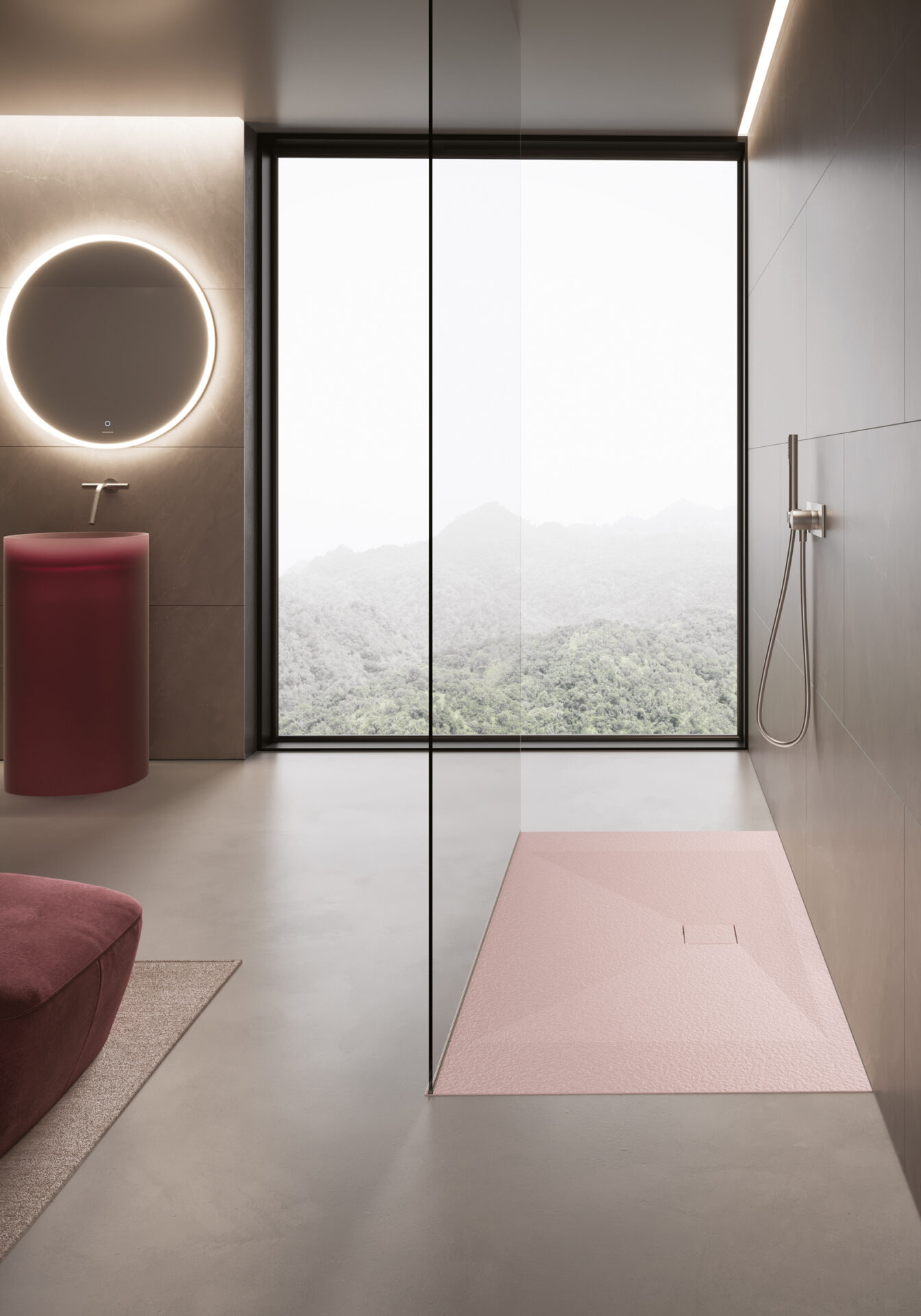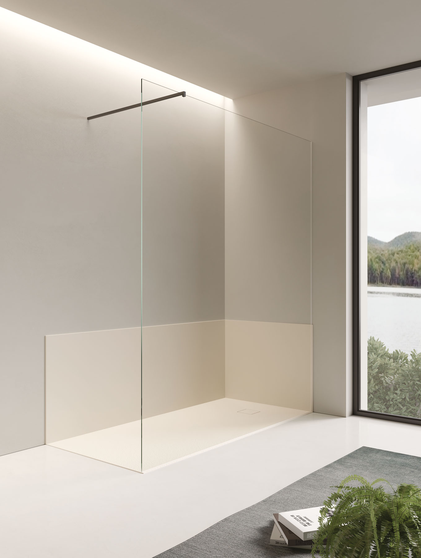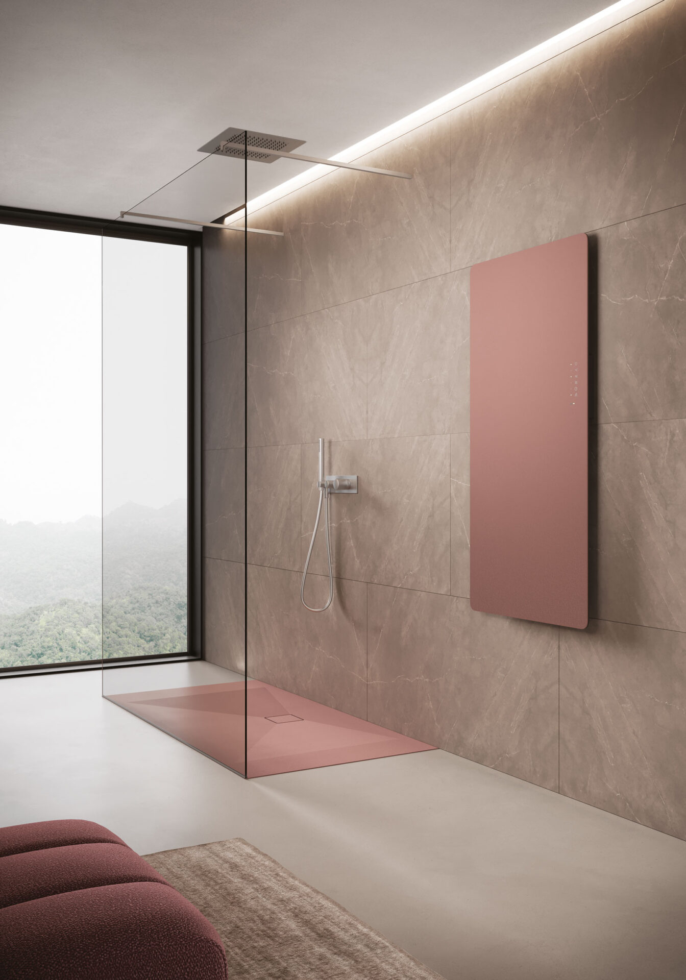 Die Duschwanne Join ist auch maßgefertigt erhältlich. Material und Ausführung können auch an den Wänden fortgesetzt werden.