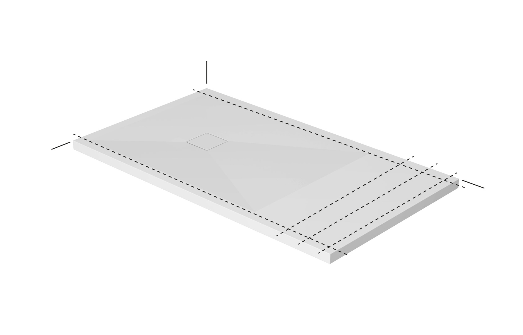 Duschwanne erhältlich für bodengleichen Einbau h 0 cm oder erhöht h 4 cm.
