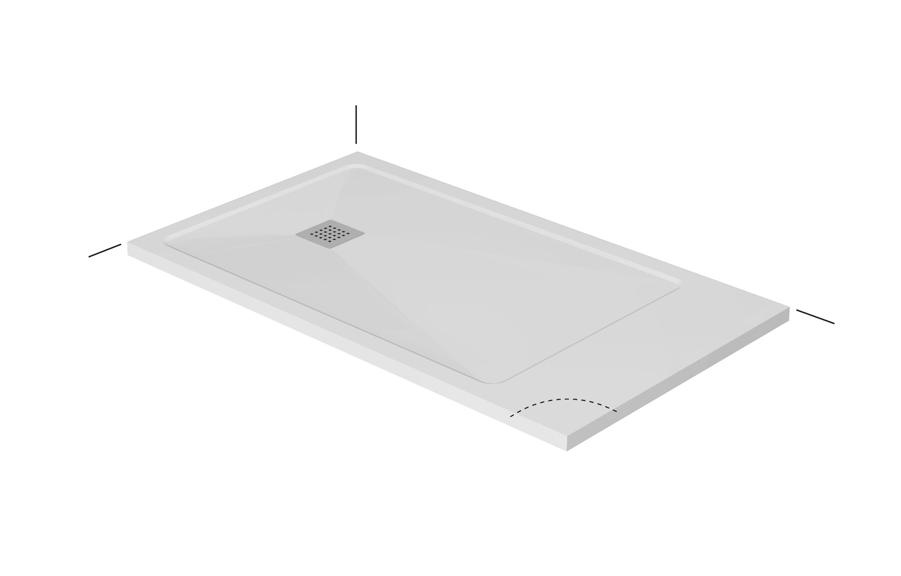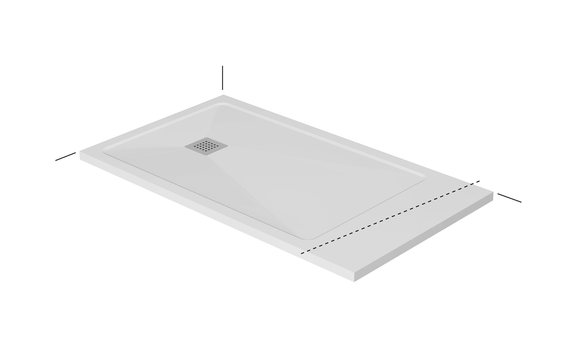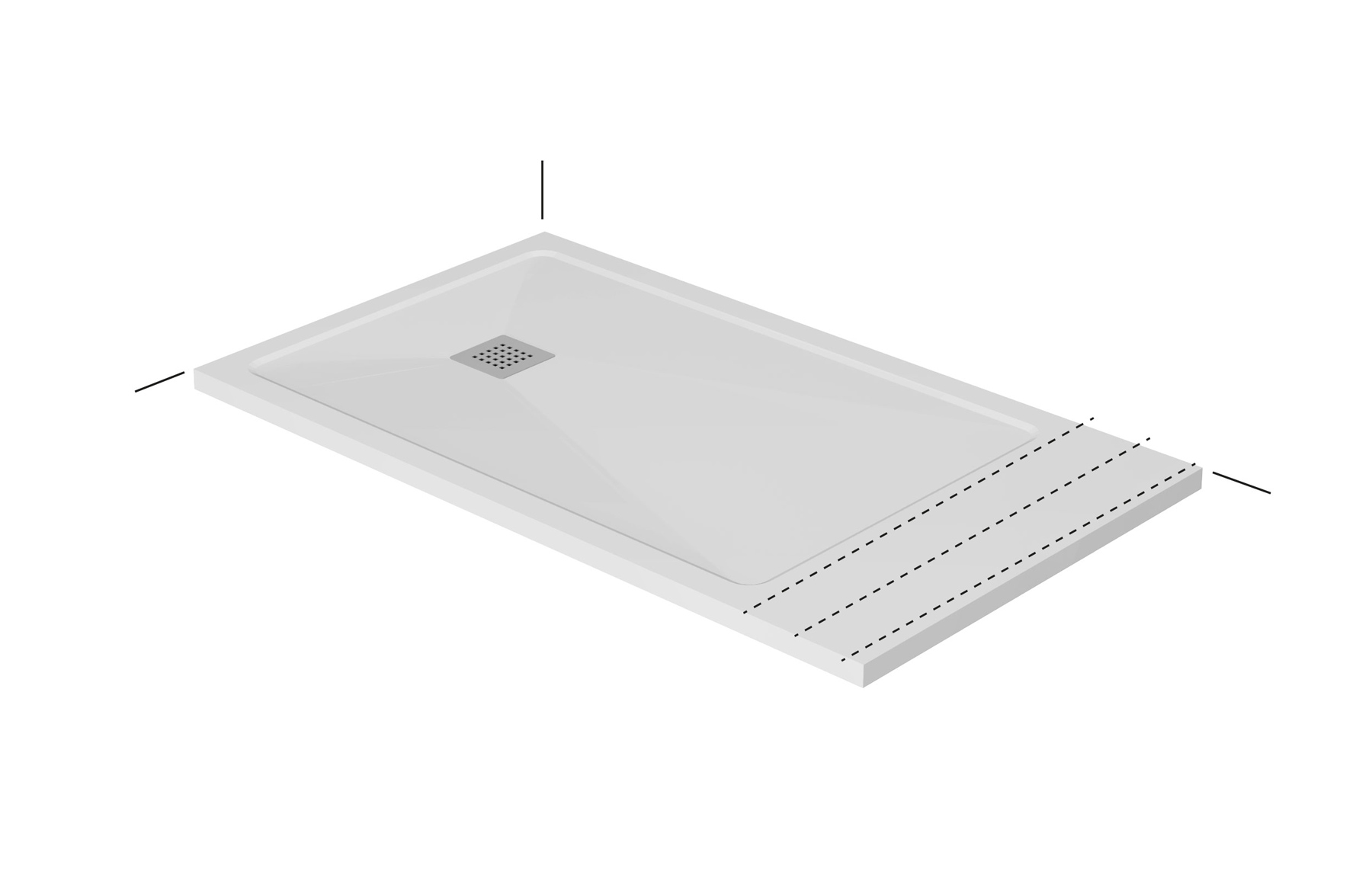 Bei der Duschwanne Luna kann auch die Version FM maßgefertigt werden: Es sind Zuschnitte in schräger, eckiger oder abgerundeter Form sowie Sondermaße erhältlich.