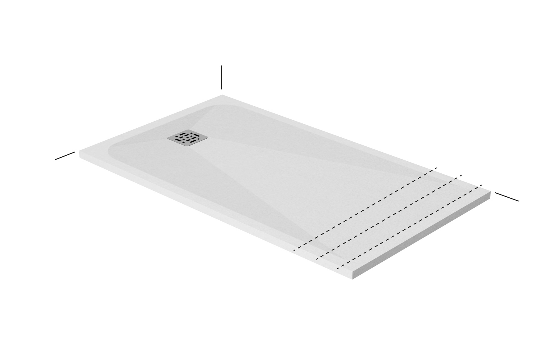 Bei der Duschwanne Piano kann auch die Version FM maßgefertigt werden: Es sind Zuschnitte in schräger, eckiger oder abgerundeter Form sowie Sondermaße erhältlich.