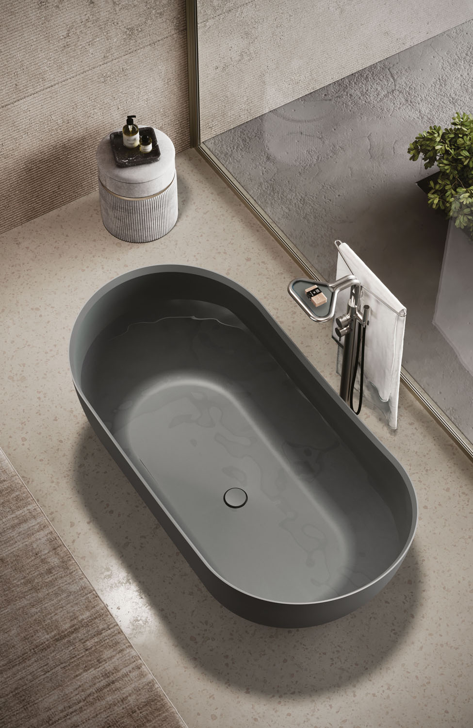Kuna lässt Sie eine sanfte Umarmung erleben und entführt Sie in ein Paradies der Ruhe und Entspannung. Diese freistehende Badewanne ist aus Aquatek Light hergestellt und kann außen oder auch innen in allen matten Lackfarben von Ideagroup oder RAL-/NCS-Farben lackiert werden. Mit Druckknopf-Ablaufventil erhältlich. Mit farblich passendem Ablaufdeckel.