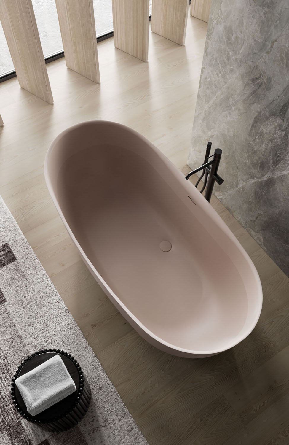 Die Badewanne Ischia fügt sich hervorragend in jedes Ambiente ein, da sie Stil mit Eleganz verbindet. Sie ist aus Cristalplant in Bianco matt erhältlich und kann außen oder auch innen in allen matten Lackfarben von Ideagroup oder RAL-/NCS-Farben lackiert werden. Überlauf in die Badewanne integriert. Mit Druckknopf-Ablaufventil erhältlich. Mit farblich passendem Ablaufdeckel.