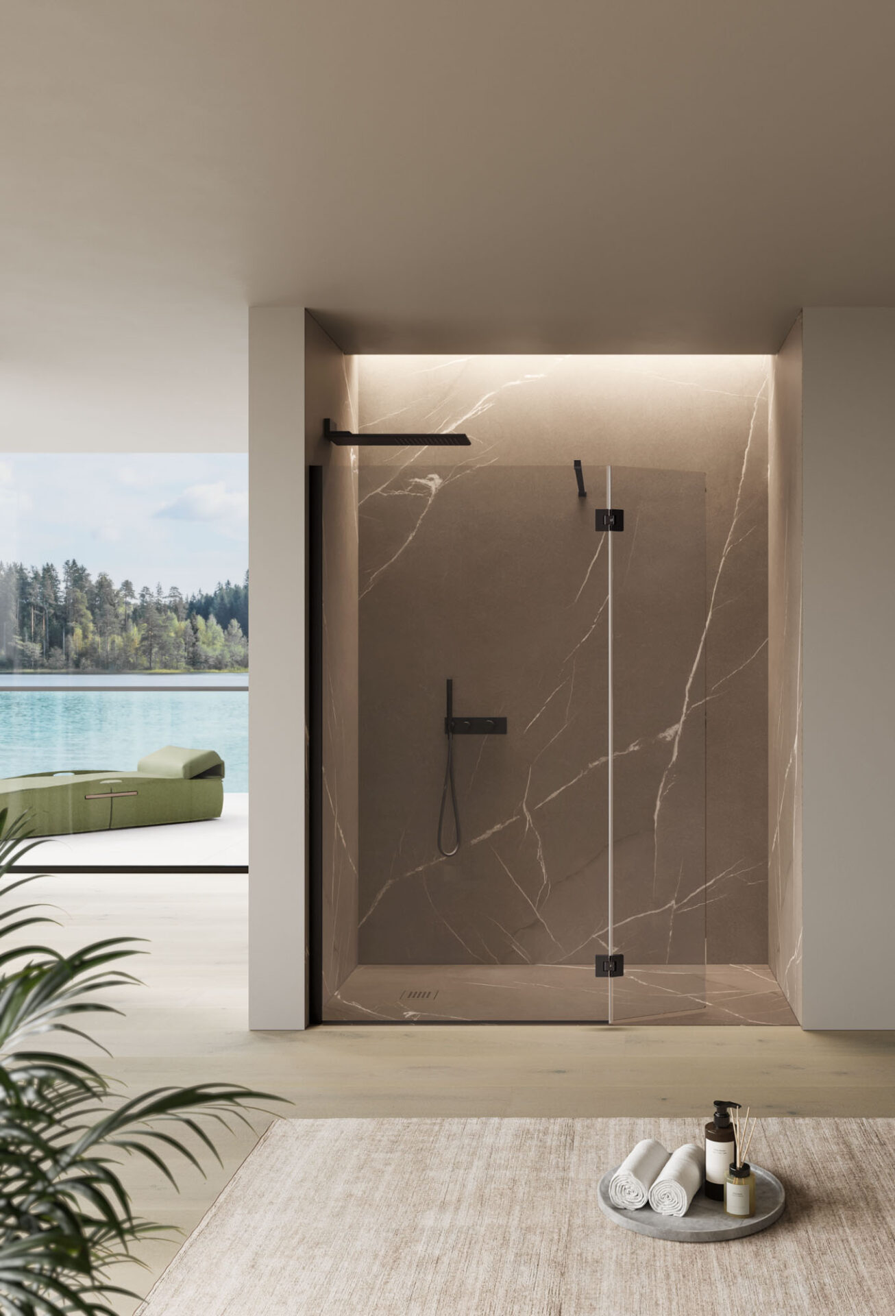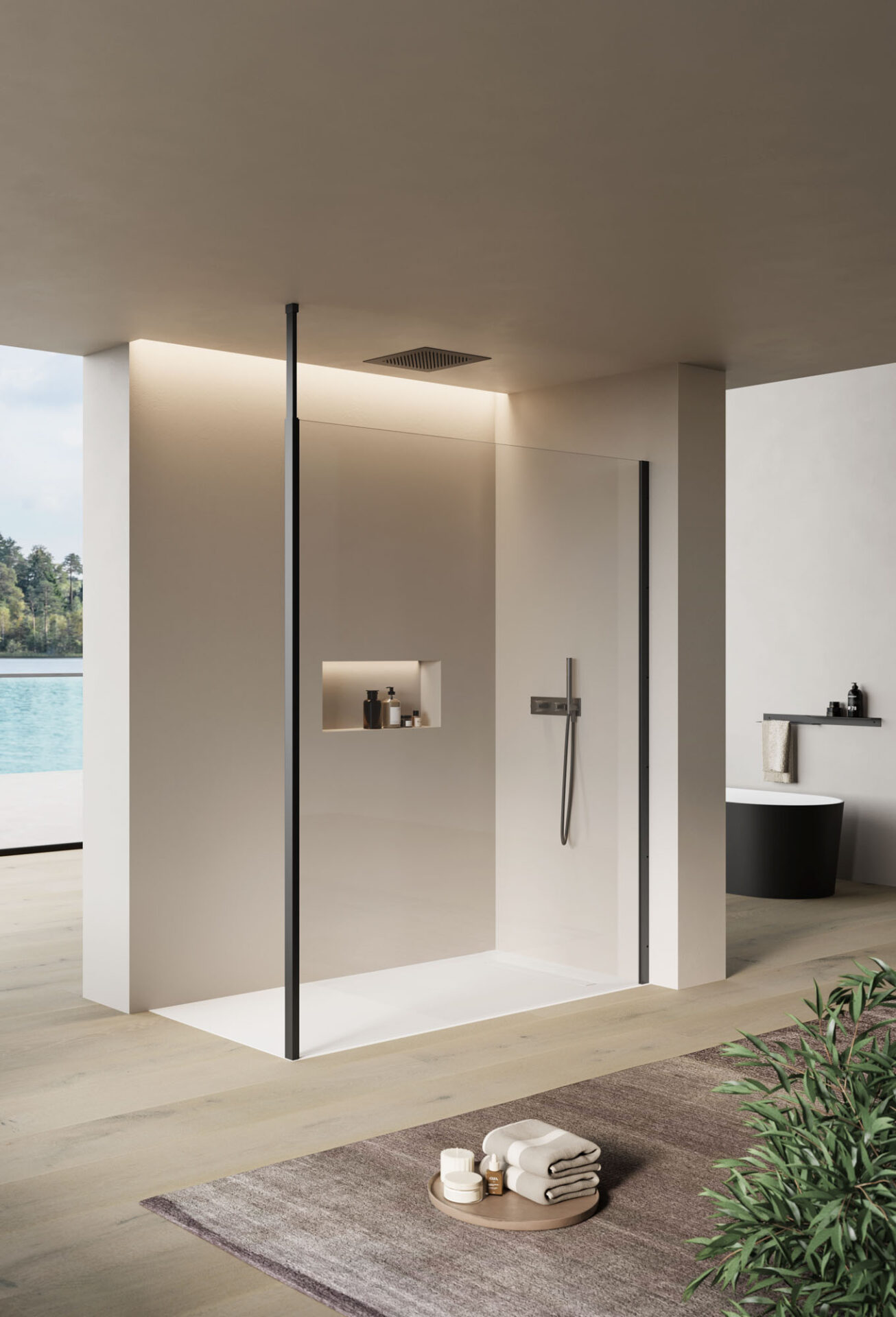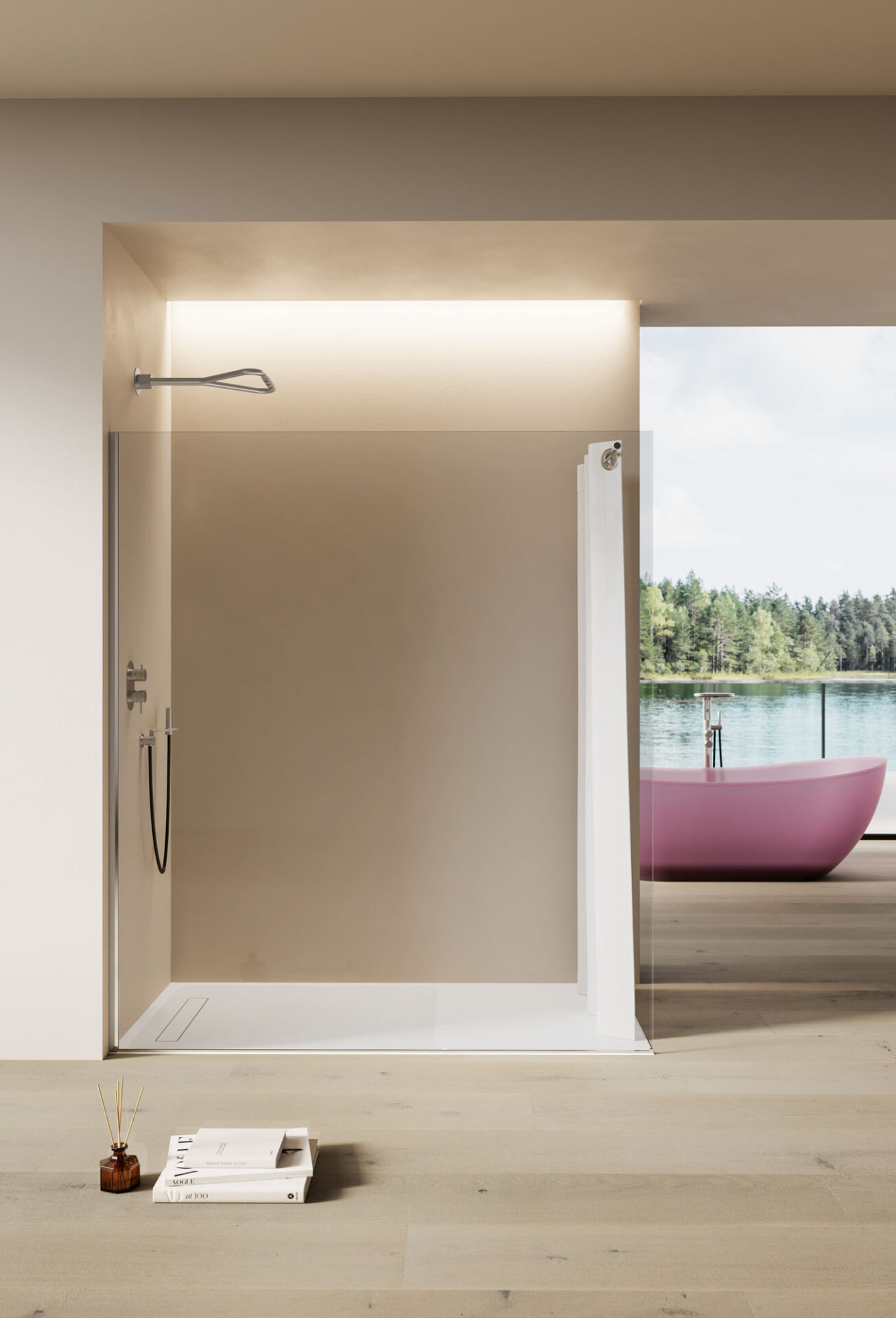 Wohlbefinden erlangt in ästhetischer und funktionaler Hinsicht eine neue Dimension. Vitrum bietet eine Vielzahl von Lösungen und passt sich auf moderne Weise allen Anforderungen an. Die bis ins kleinste Detail durchdachte Duschkabine bietet Entspannung pur. Alles befindet sich an seinem Platz und auch das Zubehör der Duschkabine ist individuell gestaltet.